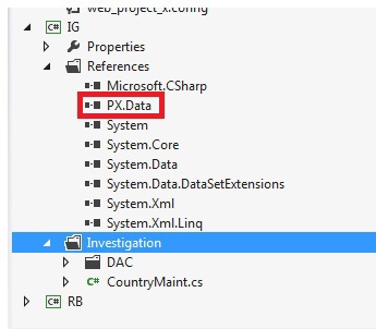 For now we have manager of records but without representation of records itself. Let's do it with tool called Data access class generator. Switch back to the file IG301000.aspx choose design mode and for the typename choose IG.Investigation.CountryMaint.