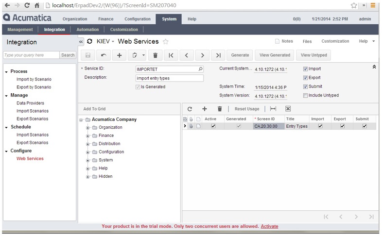 Copy Entry Types Via Web Services In Acumatica From One Instance Into Another