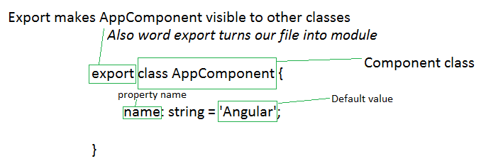 And {{name}} indicates data binding. It means that field name will get value name from the class AppComponent.